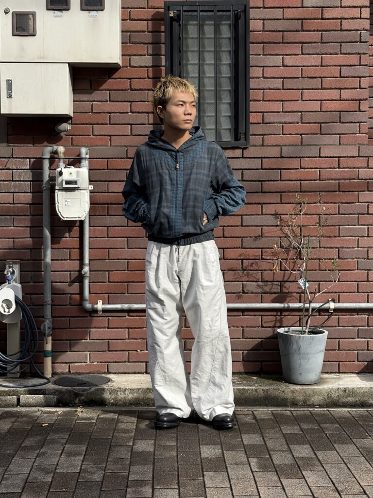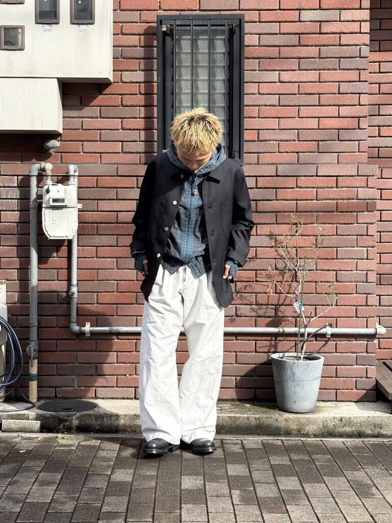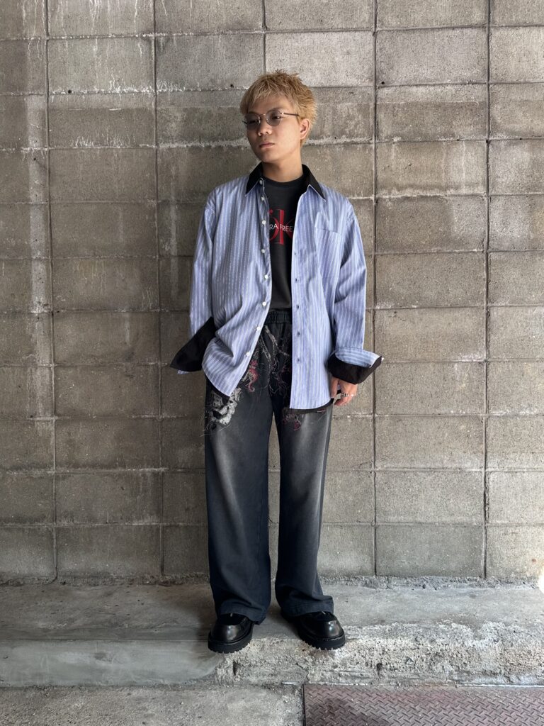 トップスにオーバーサイズ目のシャツを合わせたスタイリングもお勧めです。