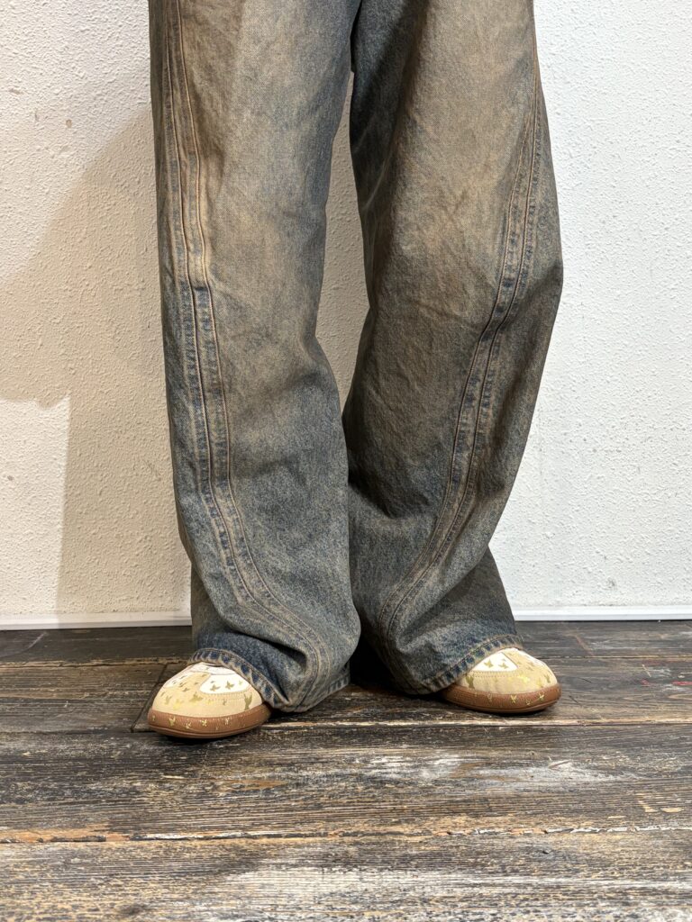 個人的にはリジットのデニムや加工感のあるような男らしいパンツに