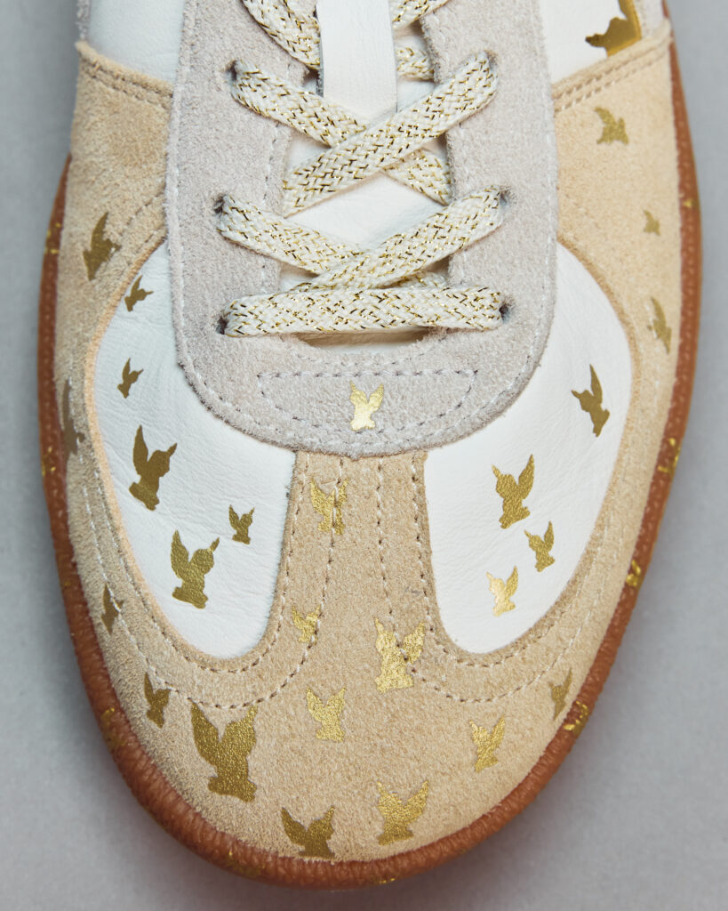 シューレースには繊細なゴールドのラメ糸が織り込まれており