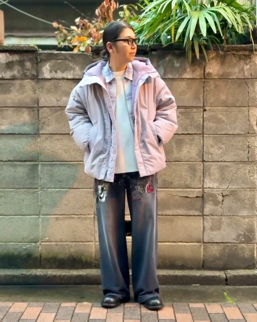 サイズはLとXL。色々と中に着込めるゆったりとしたサイズ感です。
