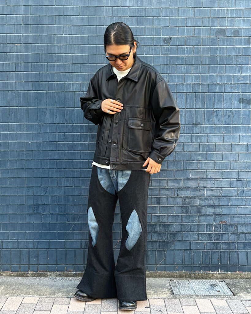 股上が浅くスッキリとしたシルエットでレザーシューズやジャケットなどにスタイリングすると格好いいです。