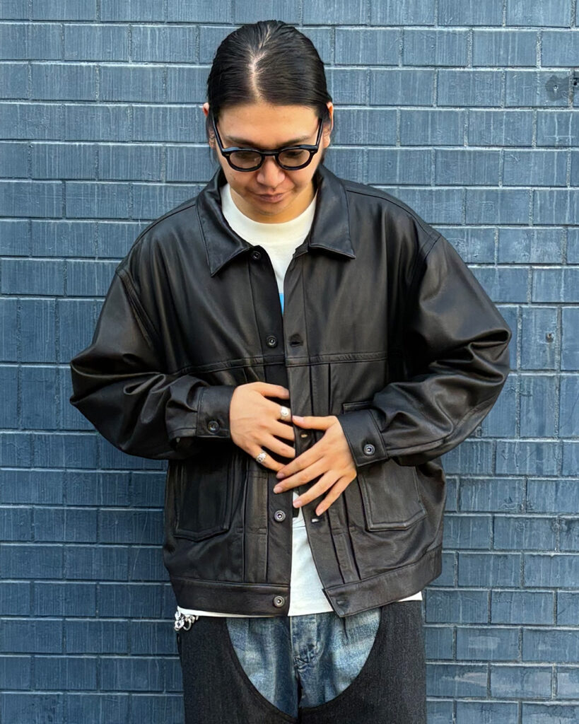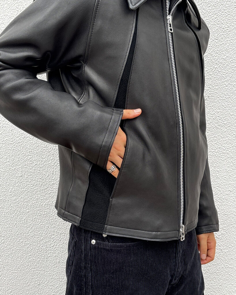 柔らかく滑らかな手触りのラムレザーのレザージャケット。
