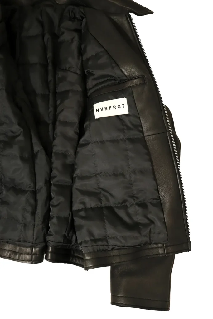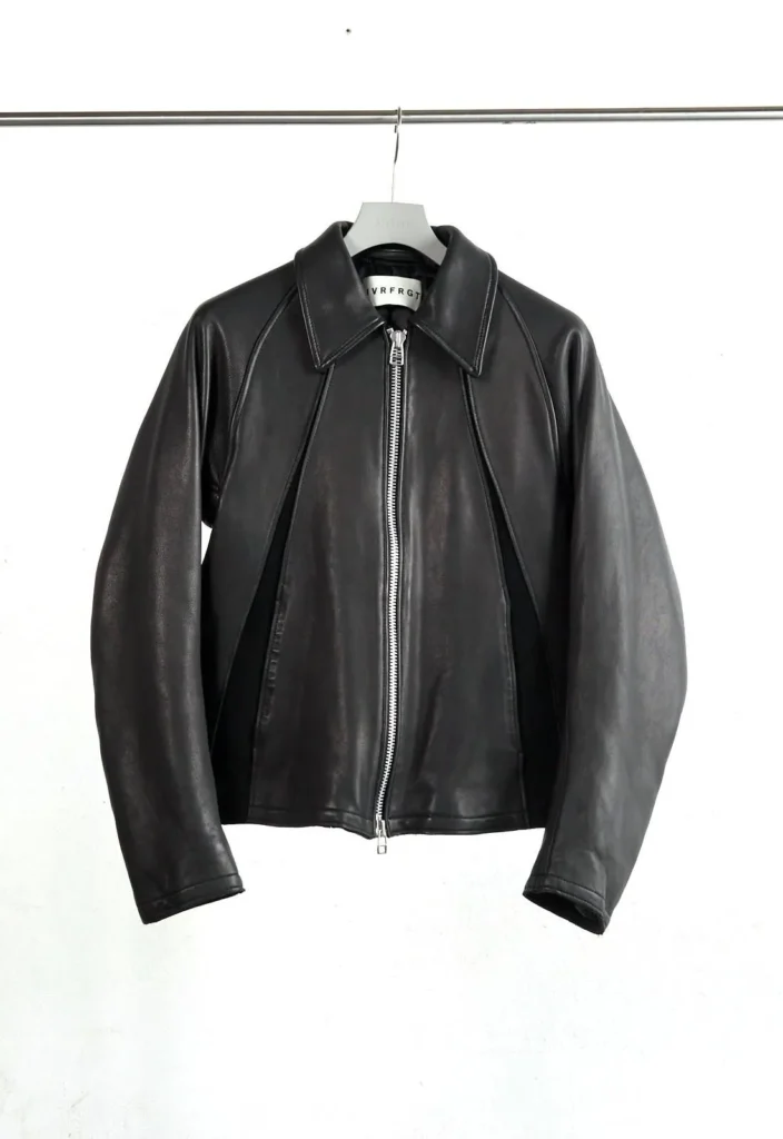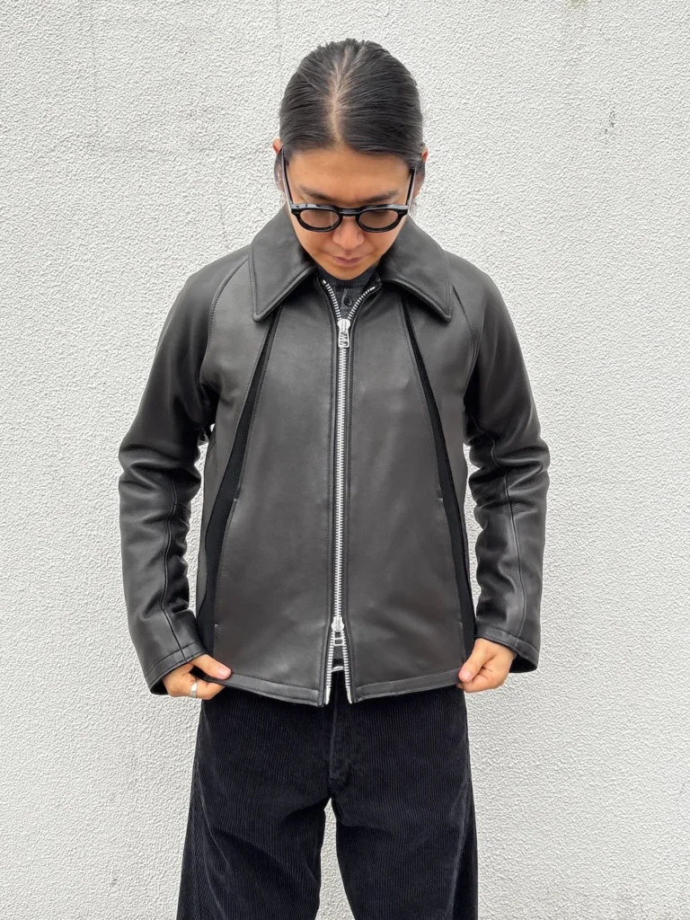 3点目はNVRFRGT LEATHER PANELED ZIP UP JACKETになります。