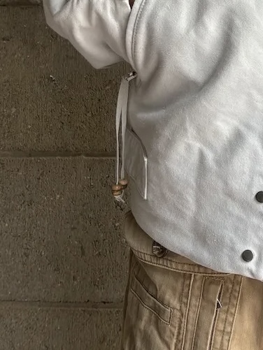 ホワイトのアウターとなっているのでベージュやグレーなどの色味と合わせていただくのがおすすめです。