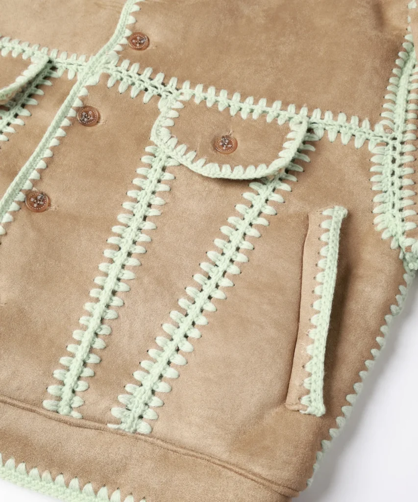 全てのシーム部分には一つずつ穴を開けかぎ針編みを 組み合わせて全て手作業で接ぎ合わせた仕様になっており、手作業ならではの丁寧な仕上がりとなっています。