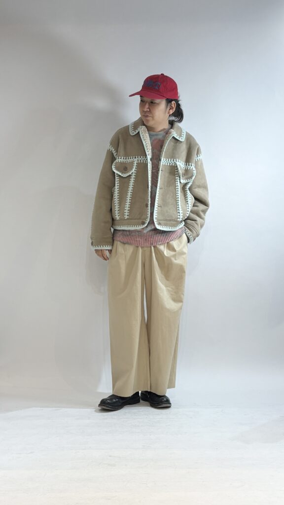 ジャケットの色味に合わせた同系色のスタイルやインディゴのデニムスタイルなど、明るいトーンのパンツととても相性が良いです。